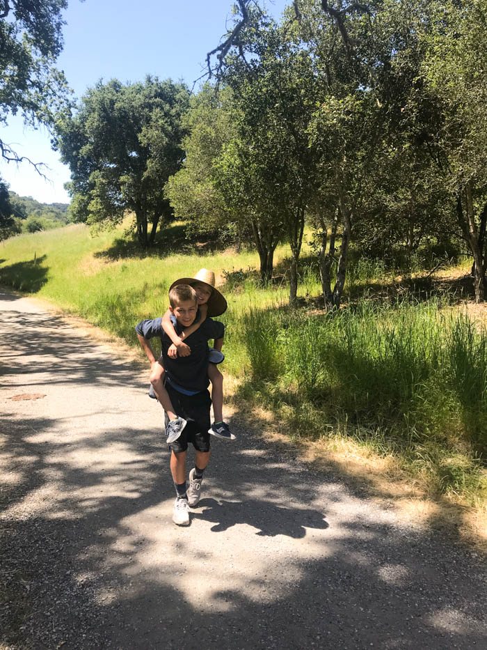 Arastradero is a favorite for hikers and mountain bikers on the peninsula about 30 miles south of San Francisco. It has some shade, but is mostly sunny which makes it best in our mild winter and spring months. Each trail twists and turns into the next with none of them being too long individually. They can be stringed together for longer hikes as well. This weekend we hiked a 4.5 mile loop through the park. My middle daughter is breaking in some new hiking boots for a backpacking trip in 3 weeks and was carrying a new backpack to get the feel for things to come. My youngest who was leading the way the majority of the trip began to fade in the last mile. that’s where having a big brother really makes things more fun!