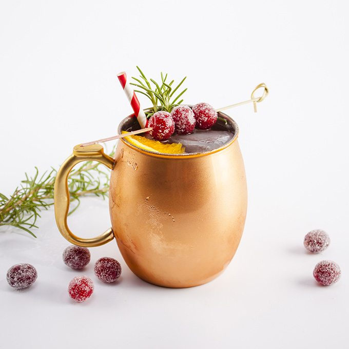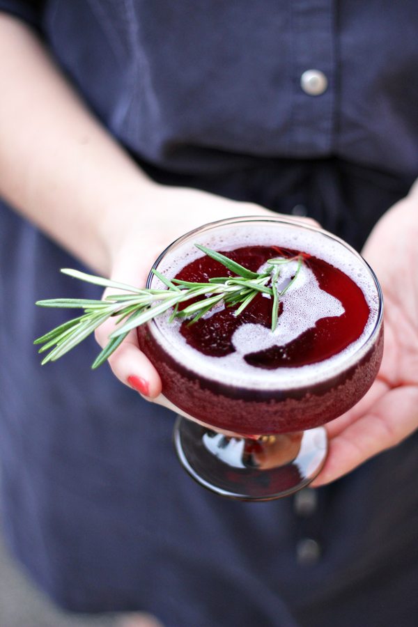 One of my favorite ways to simplify holiday party planning is to create a signature cocktail to serve at your gathering. A few seasonal ingredients can do the trick without adding a lot to your party prep. Just be sure not to include anything too sweet, no one likes to curse their host the next morning! I tend to eliminate all simple syrups by using fresh ingredients and infusing the spirit itself ahead of time. A squeeze of citrus or dash of juice goes a long way in terms of flavor and a hint of sweetness. Cranberries are a clear option to add that festive color and flavor to holiday cocktails. I also really love adding herbs like thyme and at the holidays, a sprig of rosemary does the trick. I’ve gathered a few of my simple favorites to inspire your next party. They are simply gorgeous too!