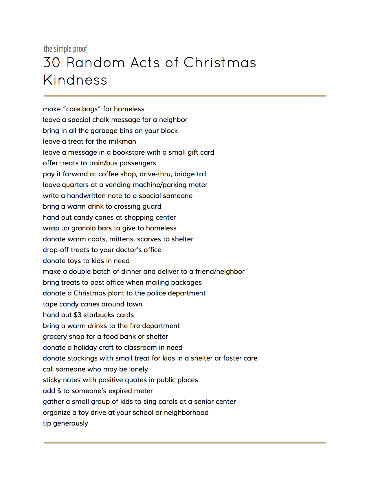 More thoughts on acts of kindness and a Random Acts of Kindness generator from The Simple Proof Christmas