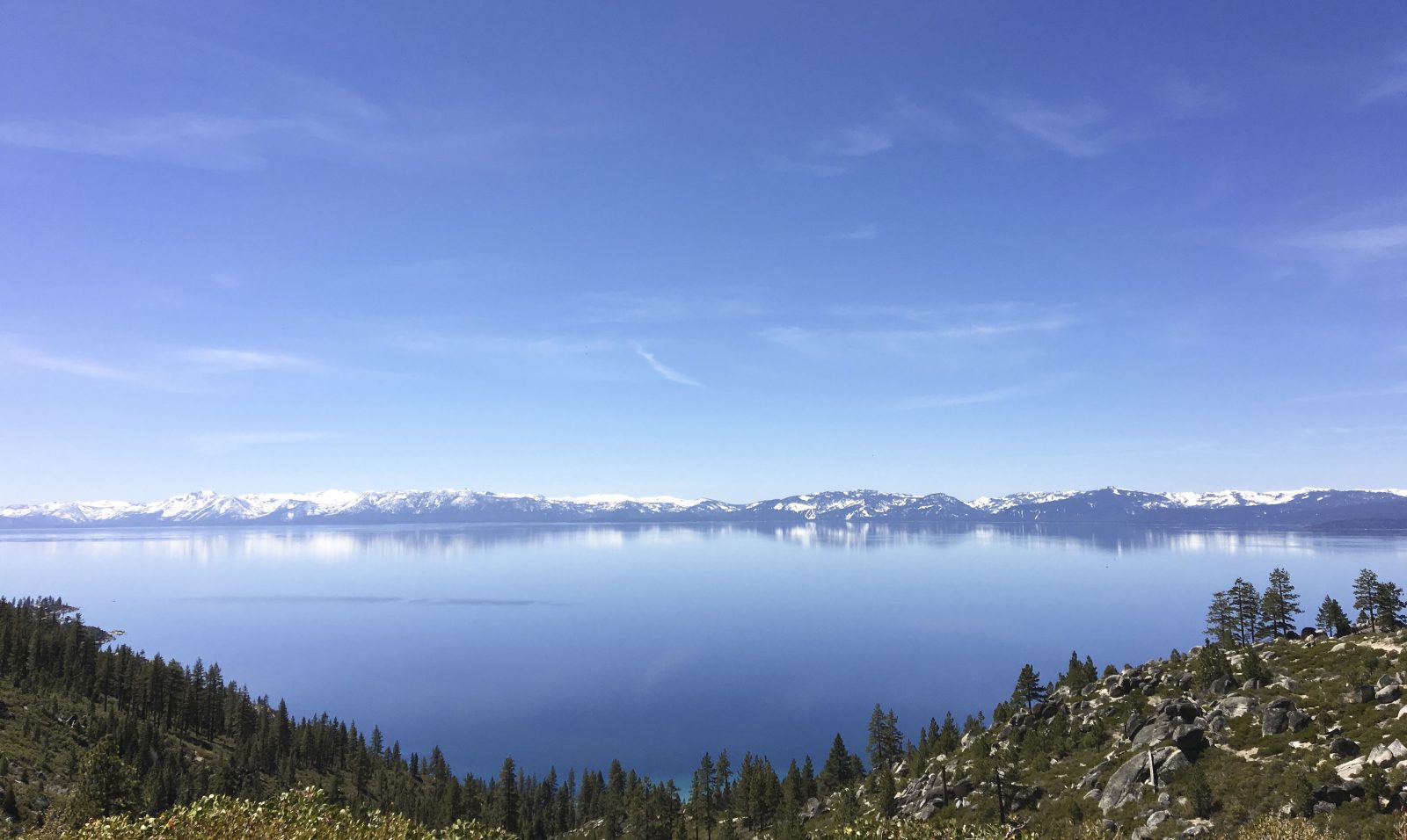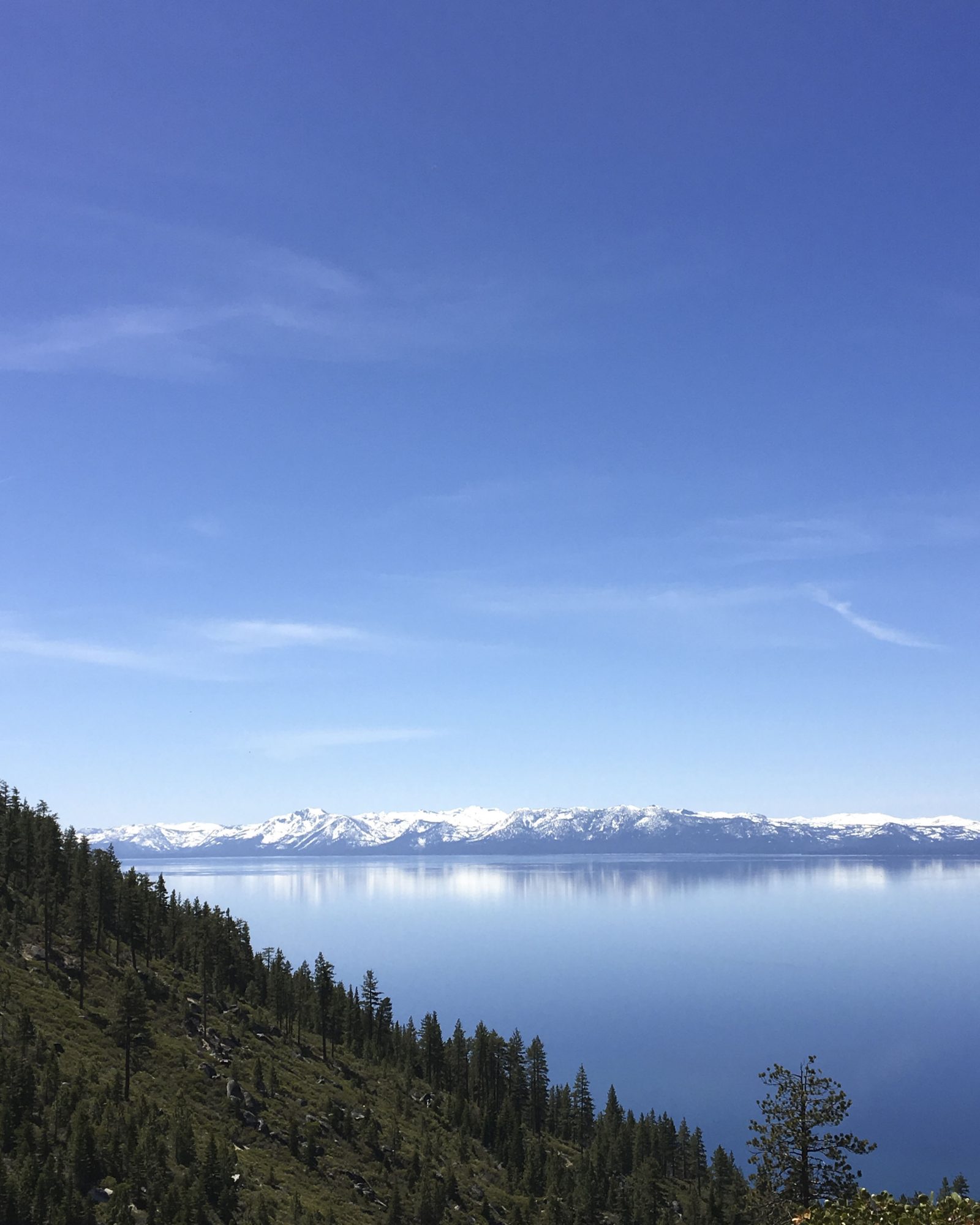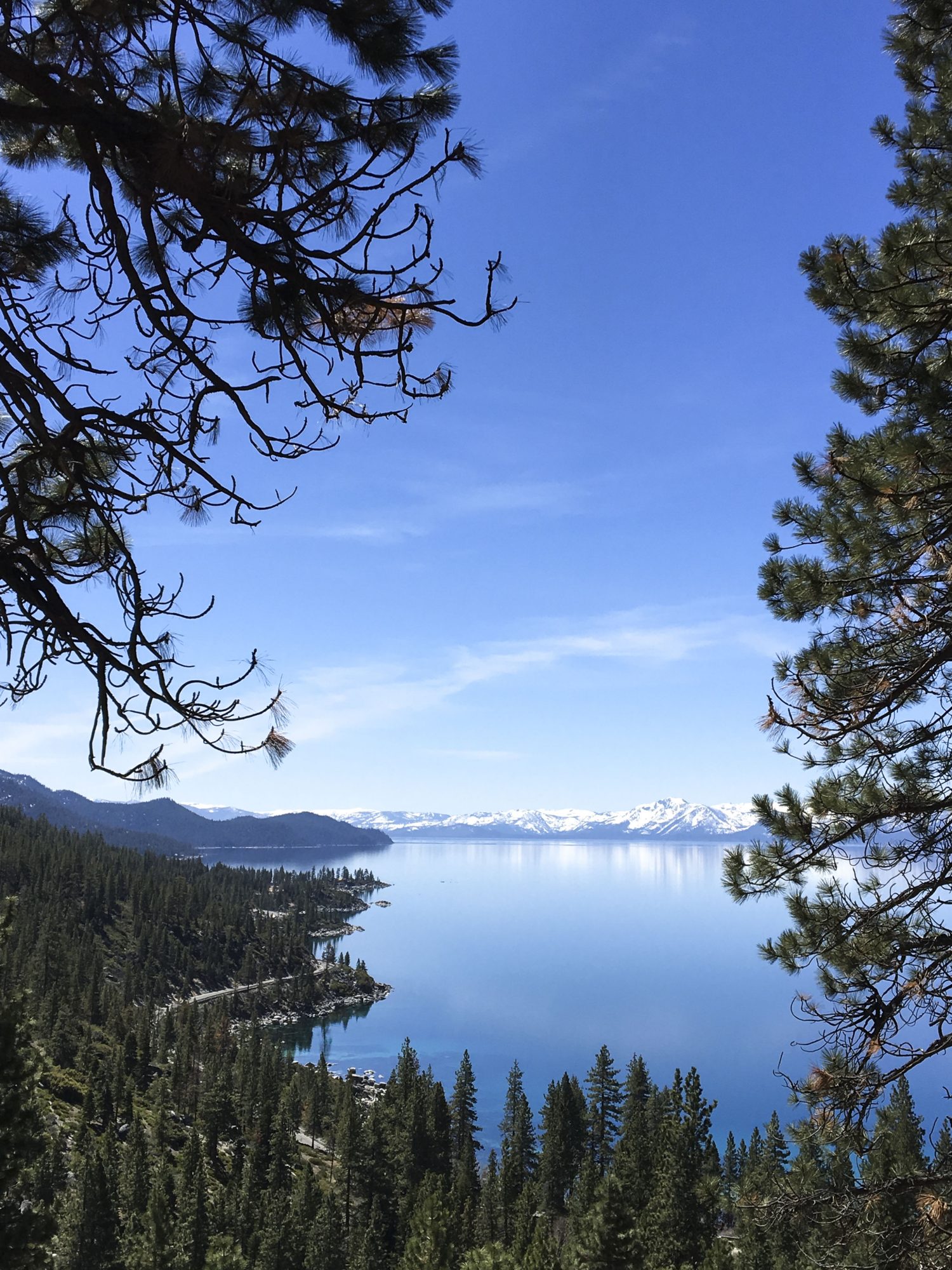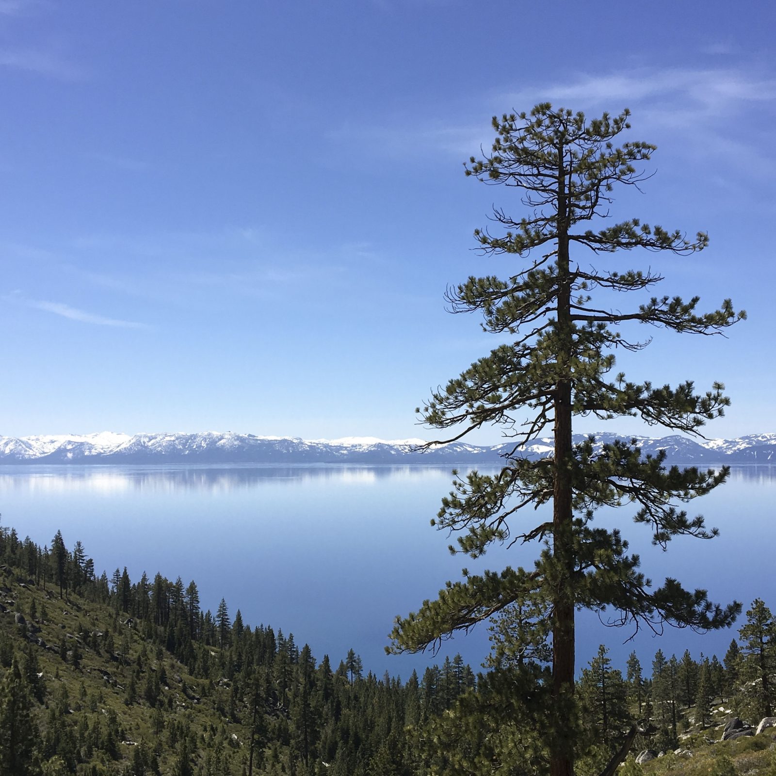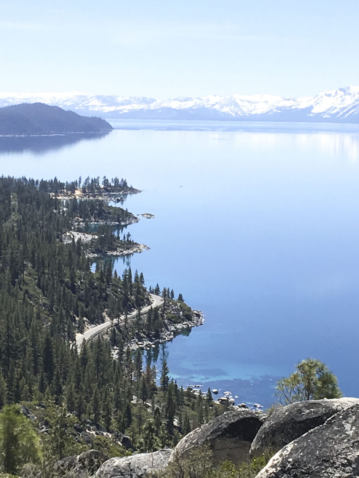 I couldn’t agree more. As we looked out over the mountains at the glistening deep blues of the lake below, the reflections of the mountain were indeed photographed on the lake’s surface. The east shore is a lesser traveled gem. It’s waters range from deep cobalt to Caribbean turquoise blues. Large boulders protrude from the crisp lake water and make the best climbing spots. We spotted a lucky kayaker out that early spring day, with the lake entirely to himself. I started to envy him out there with Tahoe all to himself. Stopped myself from envy, knowing that familiar feeling of the sun on my back and that Tahoe Sparkle on the water, he was in heaven.