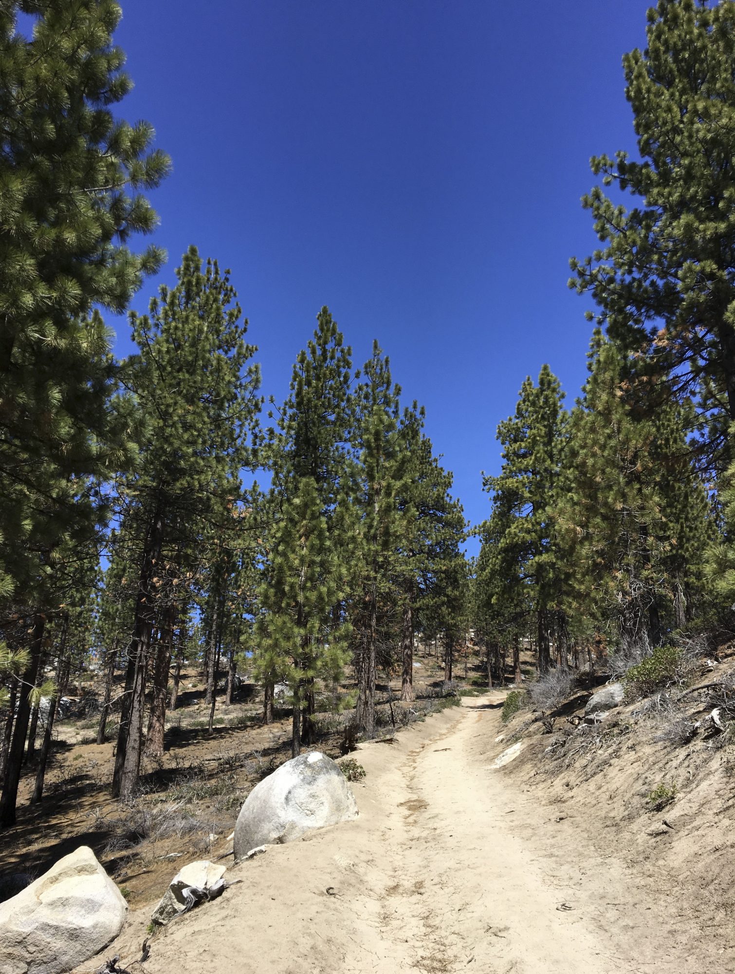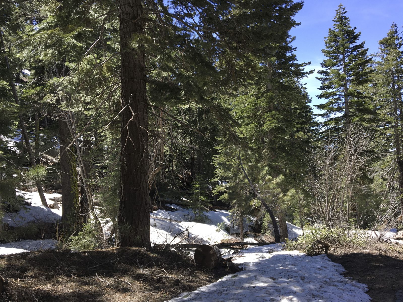 This portion of the Flume Trail is actually the northern tip where it merges with the Tahoe Rim Trail and into the Tunnel Creek Trail. Since this is an early season hike, we were fortunate not to see a lot of people and not to have to compete with many mountain bikers. Though one day, I’d love to be strong enough a mountain biker to do the whole Flume Trail. The start of this hike can be accessed a few miles east of Incline Village along Highway 28 also known as Tahoe Blvd.